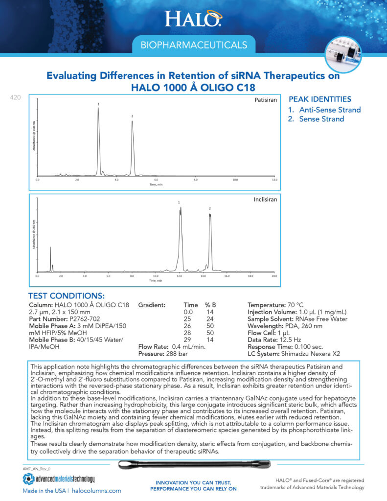 Evaluating Differences in Retention of siRNA Therapeutics on HALO 1000 Å OLIGO C18