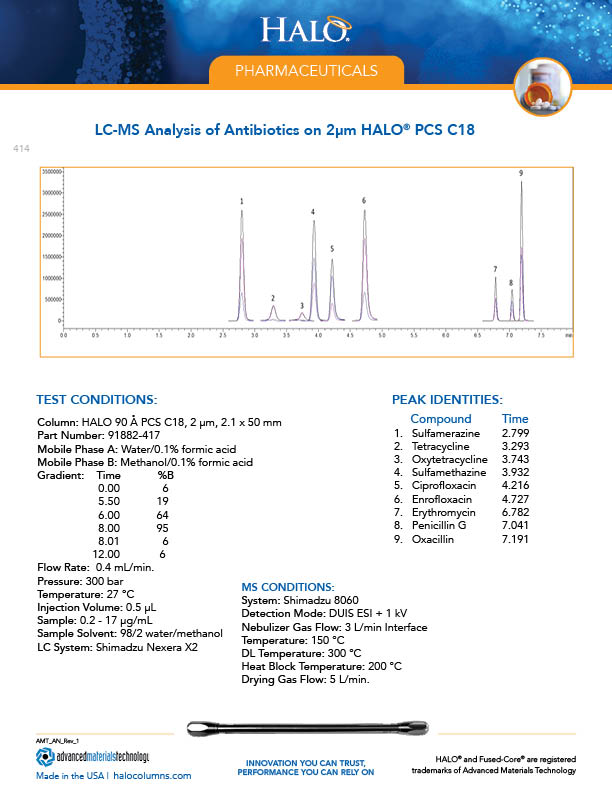 LC-MS Analysis of Antibiotics on 2 µm HALO PCS C18