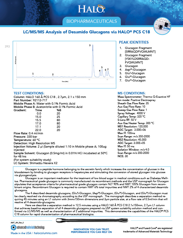 LC/MS/MS Analysis of Desamido Glucagons via HALO® PCS C18