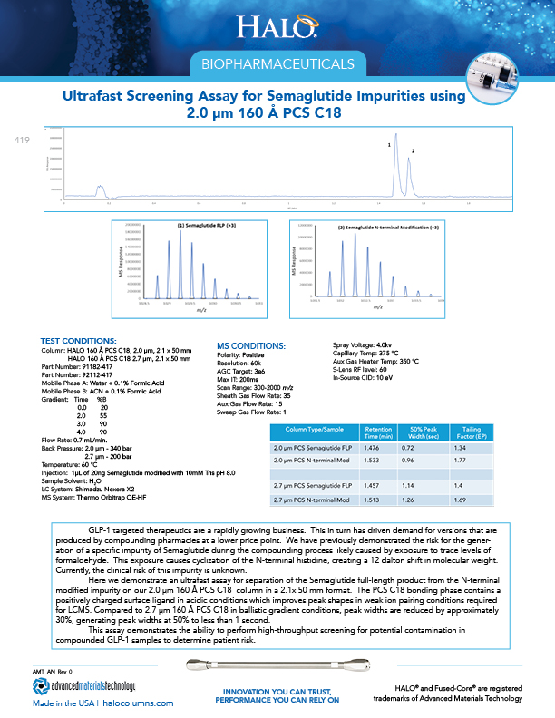 Ultrafast Screening Assay for Semaglutide Impurities using 2.0 µm 160 Å PCS C18