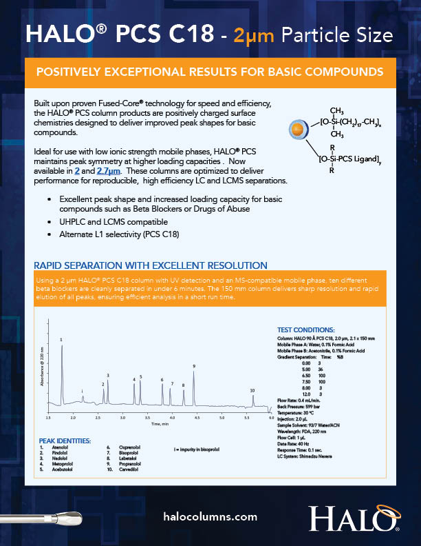 HALO PCS C18 2um Toss Sheet